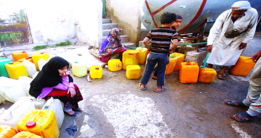 تضطر آلاف الأسر في الآونة الأخيرة تحت وطأة حكم الميليشيا الحوثية وتحت ضغط العامل الاقتصادي وتناقص قدراتها الشرائية إلى التخلي عن شراء المياه، وبدأت فعلياً البحث عن مصادر بديلة مجانية حتى لو لم تكن آمنة صحياً، وتجلس فتاتان تنتظران لجمع المياه من صنبور في صنعاء.