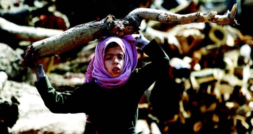 طفلة يمنية تحمل عوداً من الخشب لسد النقص المستمر بالوقود والغاز في معاناة كبرى تعيشها الأسر في صنعاء جراء تسلّط ميليشيا الحوثي