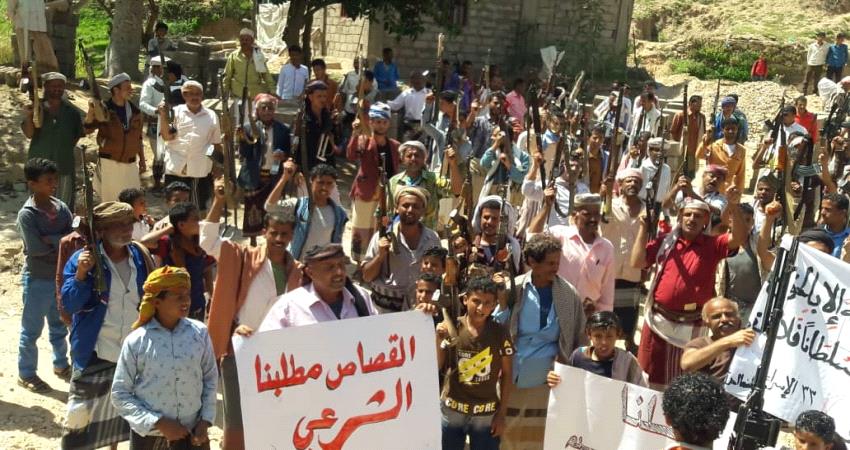 نظم المئات من ابناء مديرية القبيطة في لحج وقفة احتجاجية في منطقة الرما جنوبي المديرية بلحج