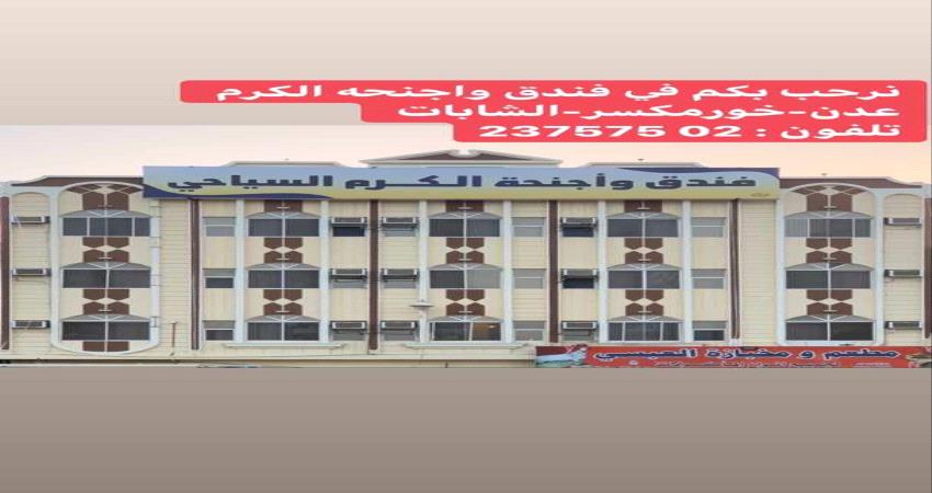 افتتح رجل الاعمال صالح عبدالله الجرو فندق وأجنحة الكرم السياحي بمديرية خورمكسر بمركز السوق التجاري المعروف بالشابات.