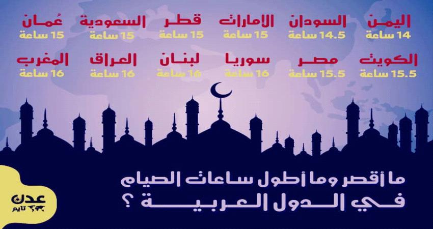 انفوجرافيك- ساعات الصيام في الدول العربية