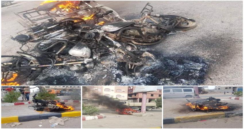 وعلمت عدن تايم ان الدراجات المضبوطة جرى إحراقها في مواقع يشتبه صلتها بحادثة الاغتيال.