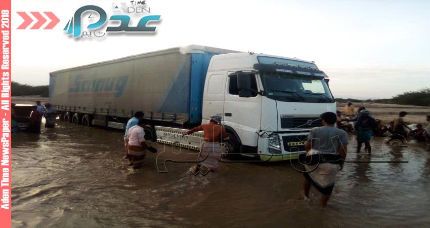 وناشد سائقو وملاك الشاحنات الكبيرة الجهات المختصة في احور بالتعاون معها وإخراج مركباتهم من وسط الوادي حتى لايكون مصيرها إلى البحر .