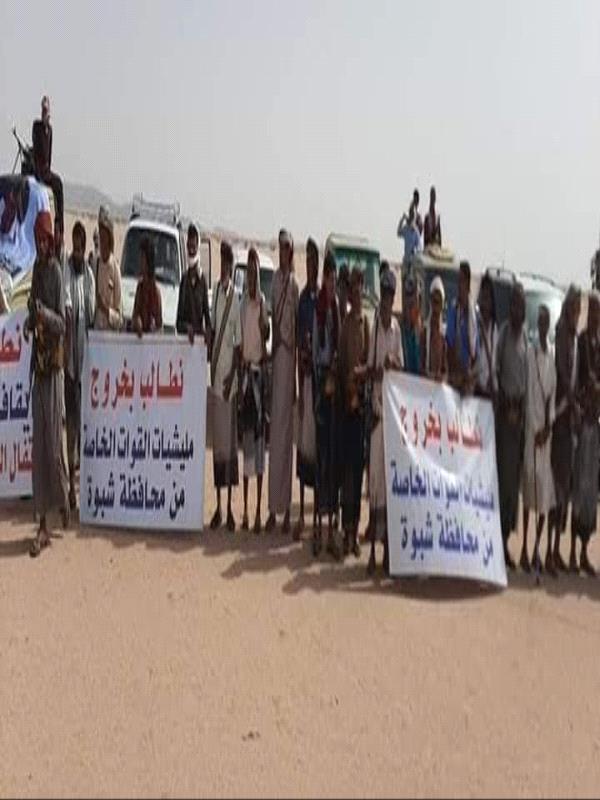 قبائل شبوة تمهل ميليشيات الاخوان والسلطة اسبوعا لتسليم القتلة ومغادرة القوات الخاصة(صور)