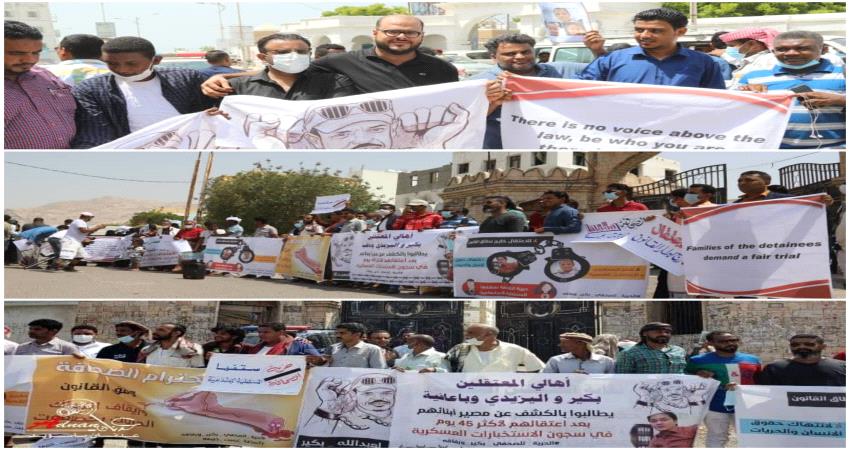 المكلا تشهد وقفة إحتجاجية كبرى للمطالبة بإطلاق الصحافي "بكير" ورفاقه "بيان وصور"