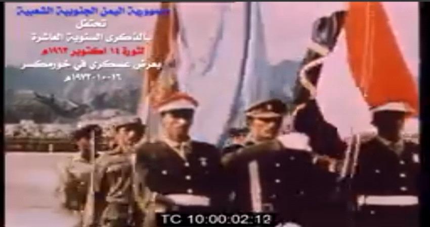 نشر المدون الجنوبي حسين العمري فيديو لعرض عسكري للجيش الجنوبي في العام 1973، والذي كان بمناسبة الذكرى العاشرة لثورة 14 أكتوبر، وأقيم في ساحة العروض بالعاصمة عدن.