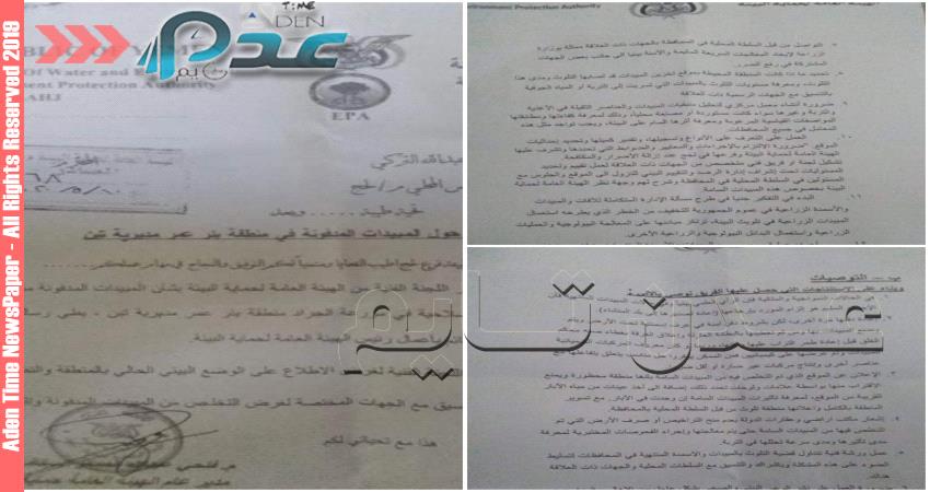 قدم مدير عام الهيئة العامة لحماية للبيئة بلحج المهندس فتحي عبدالله الصعو السقاف تقرير الى محافظ محافظة لحج حول المبيدات المدفونة تحت الارض بمنطقة بمنطقة بئر عمربتبن.