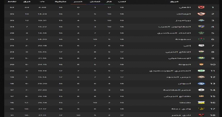 (صورة) ترتيب الدوري المصري
