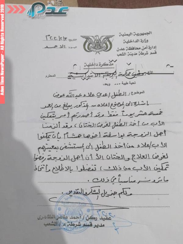 واضاف: وصلت الى منزلي ونحن نتناقش وفور وصولنا الى منزلي وقمت بالإتصال بعاقل الحارة، واخبرته بالاتصال باخوها للحضور ومناقشة الموضوع بشكل ودي وقمت ايضا بمحاولة الإتصال بقائد شرطة الشعب ولم يرد فاتصلت بضابط النوبة وأخبرته بأني اخذت زوجتي وانهم احضروا بلاطجة للتهجم علي وقلت له : "خلي يجوا رجال نجلس نتفاهم ويجيبوا ابني حتى نجلس جميعا ونحل المشكلة والموافقة على رؤية طفلي الذي قاموا بمنعي منه وحتى من ختانه حيث قاموا بكسر أوامر وأحكام من المحكمة ذهبت لتنفيذها لاكثر من مرة وإنزال شرطة نسائية لتسليم الطفل فرفضوا وقاموا بمقاومة الشرطيات وكسر اوامر المحكمه والشرطة ووساطة قايد الشرطة وقاموا بختان الطفل دون علمي وتم التهاون بهذا الموضوع من قبل جميع الجهات الرسمية ولم يتم محاسبتهم وقدمت شكاوي على ذلك ايضاً ولم يتم عمل اي شيء.