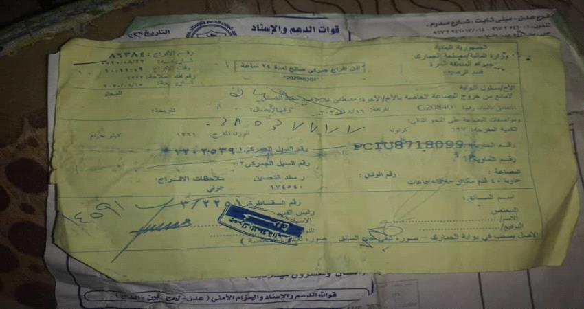 ضبطت قوات الحزام الامني في محافظة لحج، قطاع الخضراء ، شاحنتي نقل كبير، تحتوي أحدهما على بضاعة مهربة من ميناء العاصمة عدن.