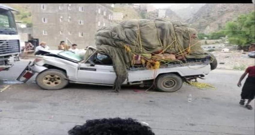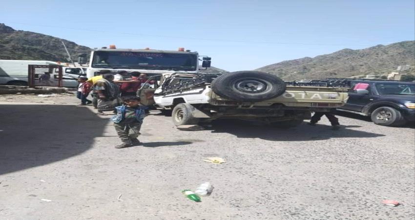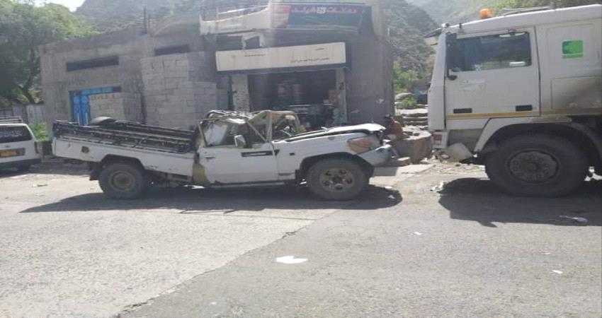 أدى حادث مرور في سوق يهر بيافع الى تحطم وإقتسام إحدى سيارات النقل نصفين وتقلب بعضها ووجد سائقوها أنفسهم وجها لوجه بسبب السرعة الجنونية لإيصال كميات هائلة من القات في موعدها.