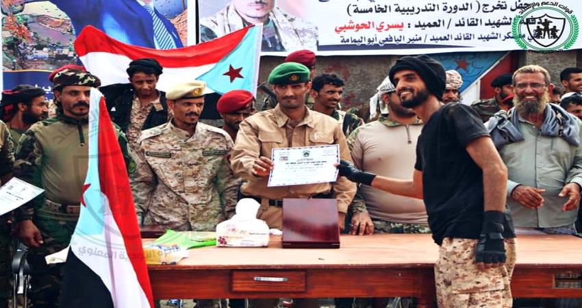 شهد معسكر الشهيد أبو اليمامة (مقر قيادة الحزام الأمني محافظة لحج) صباح اليوم الخميس 17 سبتمبر حفل تخرج الدورة التدريبة الخامسة (دفعة الشهيد يسري الحوشبي) برعاية المجلس الانتقالي الجنوبي .