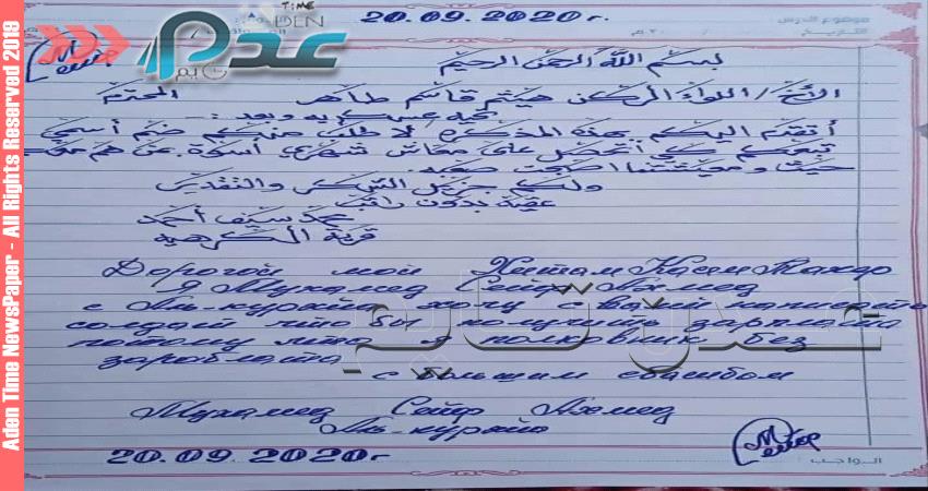 بعث الشاب محمد سيف أحمد ، خطابا الى هيثم قاسم طاهر قائد القوات المشتركة بالساحل الغربي.