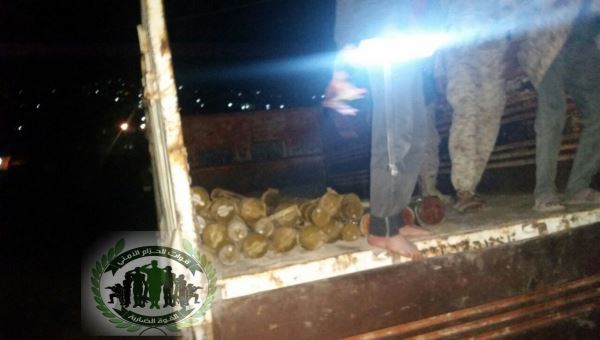 واوضح المصدر بانه تم ضبط عدد خمسين قذيفة باعشرة و 8صواريخ كاتوشه و2 صواريخ بترس ومدفع 122د30 وقذيفة وحده عليه و24قذيفة هاون عيار82و35فيوز و7صناديق قذائف 37 و6قذائف هون 81.