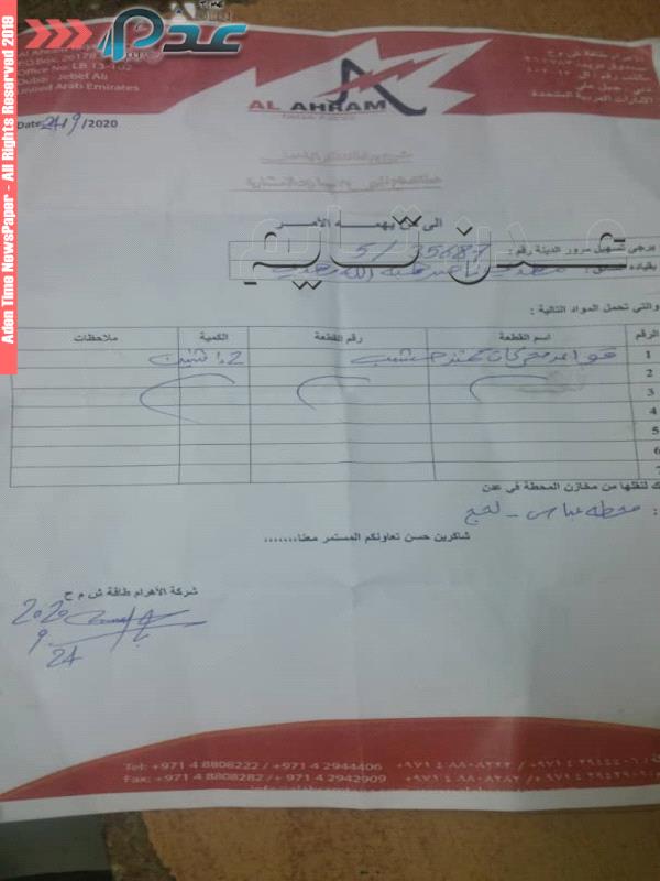 وقال لعدن تايم :"تحصلنا على مذكرة من الشركة نفسها تقول بأنه يسمح بإخراج قواعد محركات خشب فقط وليس مولدات كما يدعون".