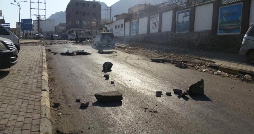 مواطنون غاضبون يقطعون طريقاً حيوياً بالمعلا .. لهذا السبب !! ( صور )