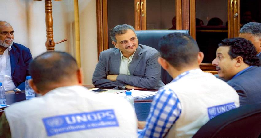 بحث محافظ العاصمة عدن الأستاذ أحمد حامد لملس، مع مكتب الأمم المتحدة لخدمات المشاريع (UNOPS) تدخلات المكتب في مشاريع الخدمات بالعاصمة.
