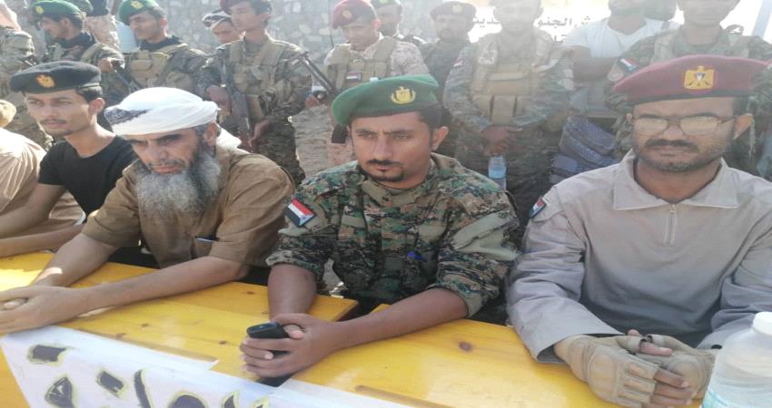 وألقى العميد عبدالله الحوتري رئيس القيادة المحلية لانتقالي محافظة أبين كلمة قال فيها ان أبين كانت ومازالت وستظل ايقونة الجنوب وهاهم الرجال الابطال من ابنائها في ميادين التدريب وخنادق الدفاع ومتارس القتال يذودون عن الأرض وكرامة الانسان الجنوبي ابين عصية وقدمت قوافل من الشهداء الأبطال والجرحى في سبيل الجنوب وتحرير الجنوب.