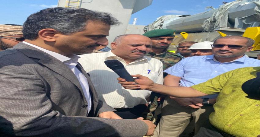 ووجه محافظ عدن كافة الاجهزة الامنية والحكومية بالعاصمة الى تقديم كافة التجهيزات والامكانات لتنفيذ سرعة نقل الشحنة من ميناء المعلا الى محطة الحسوة