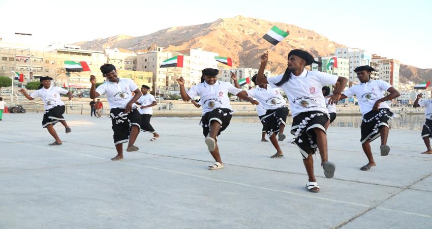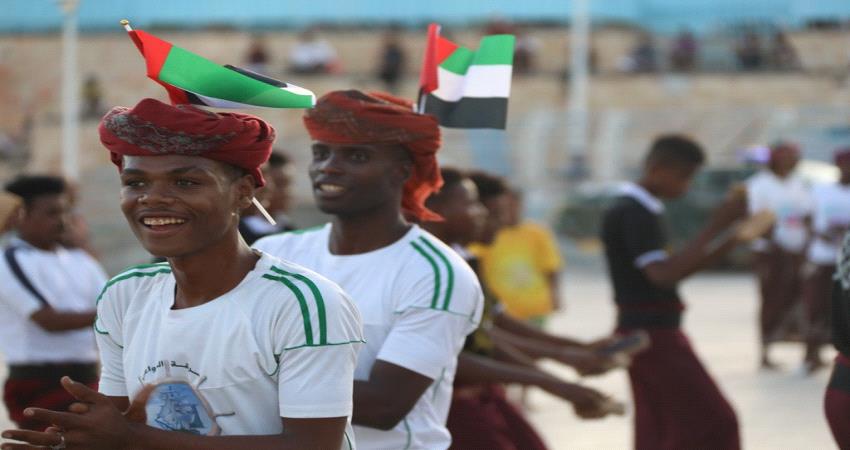 وتأتي هذه الاحتفالات لشعب الامارات في يومهم الوطني الـ 49 تزامناً مع احتفالات أبناء شعبنا بعيد جلاء الاستعمار البريطاني من جنوب اليمن في الـ30 من نوفمبر من هذا الشهر الجاري .