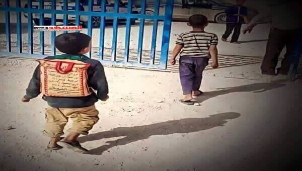 تداول ناشطون على مواقع التواصل الإجتماعي صورة مؤثرة لطفليمني يحمل على ظهره حقيبته المدرسية البسيطة التي صُنعت من كيس الأرز.