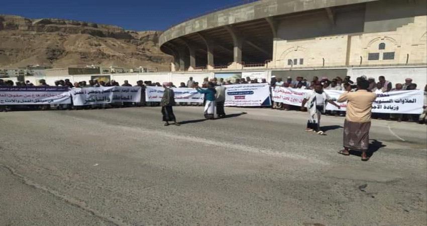 موظفو الجهاز الإداري بوادي حضرموت يتظاهرون للمطالبة بتحسين وضعهم المعيشي