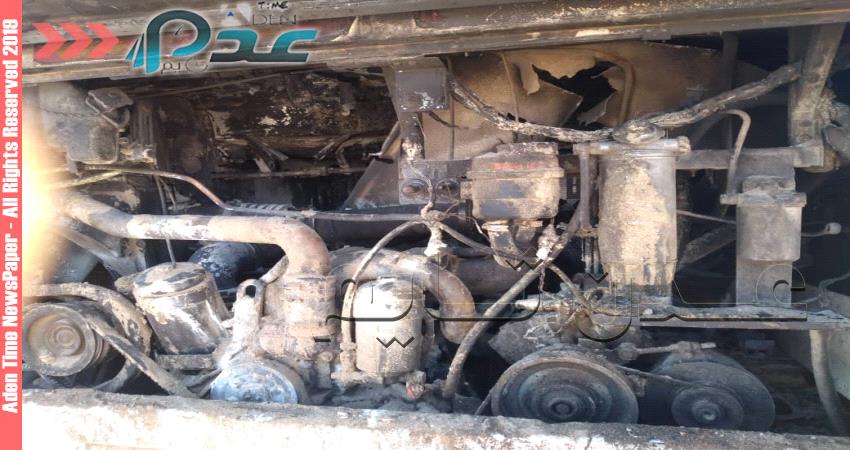 وقال مصدر امني في عمليات قطاع احور بمحافظة ابين ان في تمام الساعة 12/30 ظهرا اليوم تم اشتعال النيران في محرك حافلة للنقل تتبع الشركه الاولى لنقل.