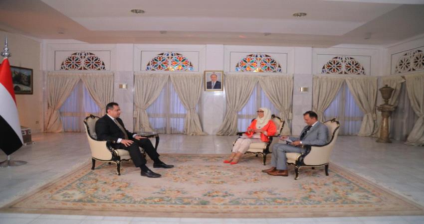 رئيس الوزراء: كلهم داعمون، ونحن نعرف أنهم قبل الأحداث ورغم المشاكل والانقسامات السابقة كانوا يتواجدون معنا في عدن وهناك تواصل بشكل كبير، الآن دعم الحكومة على الأرض وأنا أتحدث عن الدعم الاقتصادي والدعم في المجال الأمني.. لأنه من أولوياتنا أيضاً ترتيب المنظومة الأمنية ومكافحة الإرهاب إضافة إلى مصفوفة من الإجراءات الاقتصادية، لأنه بالإمكان تعمل برنامج الغذاء العالمي وتغذي 5% لكن حكومة مستقرة على الأرض وإصلاح البنى التحتية والطرق والموانئ سيساهم في تجنب مجاعة حقيقية وتجنب كارثة إنسانية حقيقية، هذا الموضوع لا يحل إلا بحكومة على الأرض، لا تحل إلى بمؤسسات دولة، لا تحل إلا ببنك مركزي قوي، لا يمكن بمنظمات الأمم المتحدة أو بغيرها أن يبقى تعاطيك مع الملف.. التعاطي الآن مهم مع الحكومة بكل وزرائها ومؤسساتها.