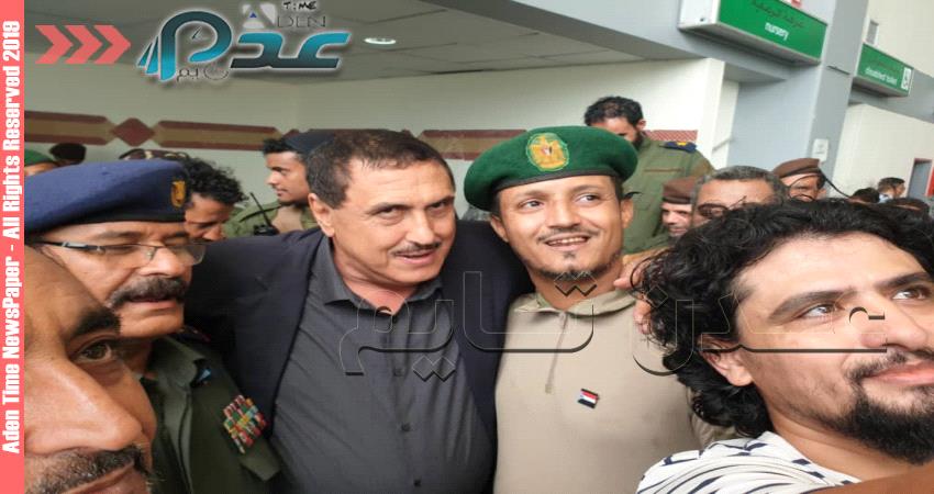ورصد مصور موقع عدن تايم صورا تظهر اللواء الشعيبي في مقدمي مستقبلي وفد الحكومة .