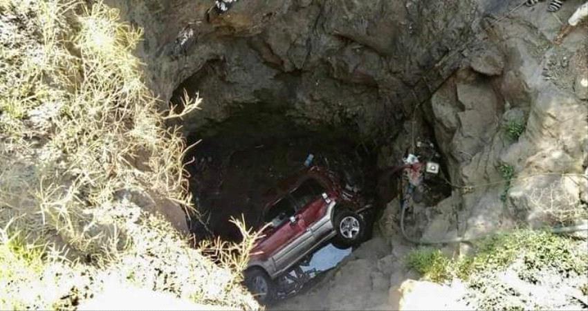 نجاة مواطن وطفل من حادث سقوط سيارة في أحد الآبار شمال الضالع (صور)