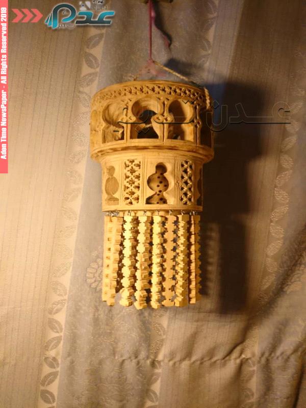 حرفي حضرمي يصنع نجفة إنارة خشبية بتصميم تراثي