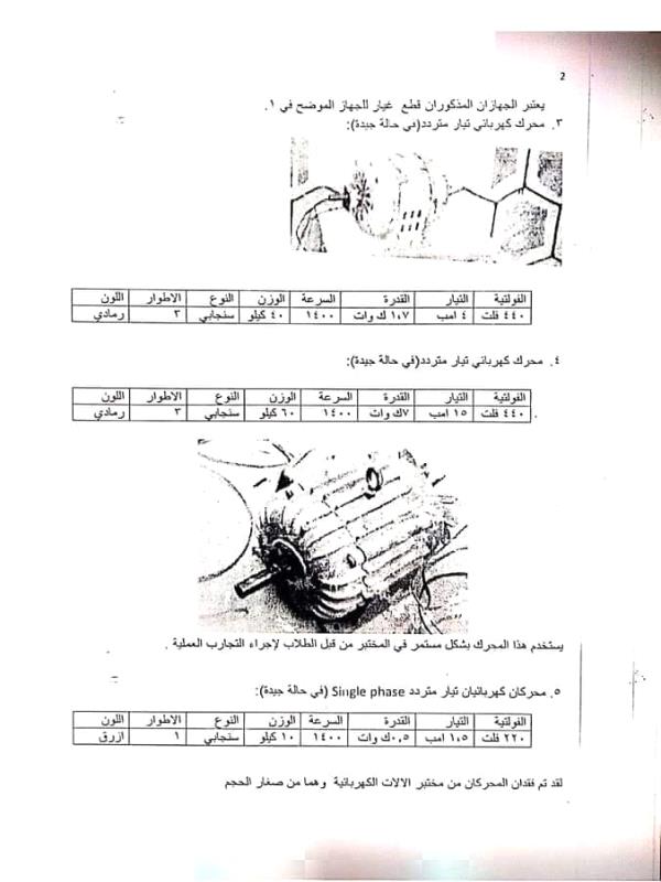 5. محركان كهربائيان تيار متردد Singel phase (في حالة جيدة). لقد فقدان المحركان من مختبر الالات الكهربائية و هما من صغار الحجم. #وزن المحرك 40 كيلو.