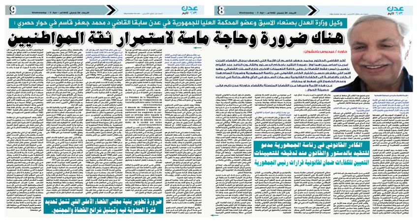 وكيل وزارة العدل بصنعاء الاسبق وعضو المحكمة العليا للجمهورية في عدن سابقا القاضي د.محمد جعفر قاسم في حوار حصري