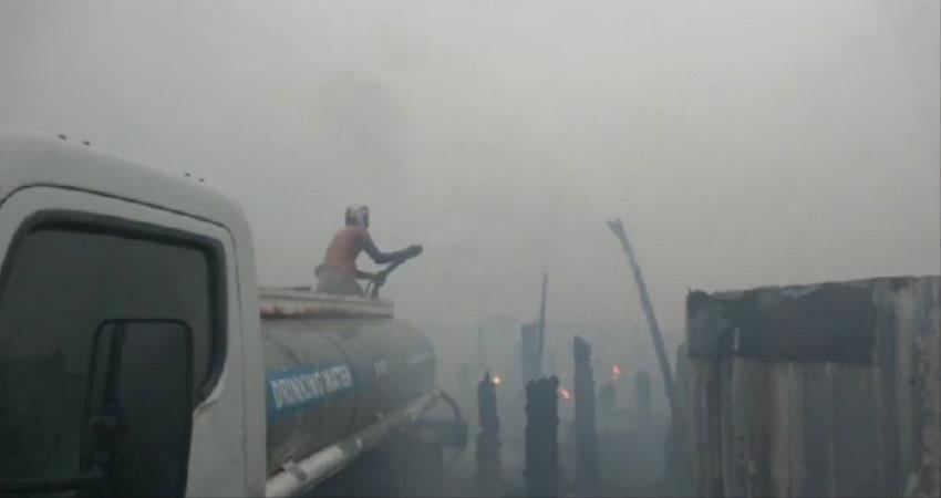 إخماد حريق شب بمخيم للنازحين جنوب الحديدة « فيديو»