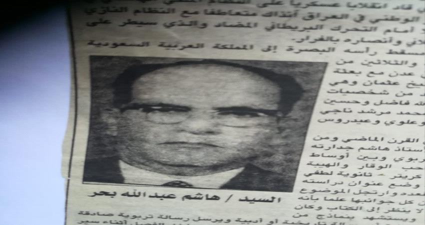 وفي كتاب عدني يتحدث عبر صاحب الكتاب د. محمد عبده غانم عن عميق امتنانه لزميله هاشم بحر الذي تولى رسم الخرائط ومنها خارطة الوطن العربي الكبير ويخلص المطلع على الكتاب إلى أن الاستاذ هاشم بحر كان فنانآ في رسم الخرائط بمنتهى الدقة.