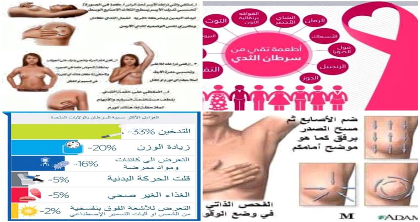 رابعا: ممارسة النشاط البدنى" ممارسة الرياضة" : فقد وجدت الدراسات، أن النساء اللواتى يمارسن المشى السريع لمدة ساعة إلى ساعتين فى الأسبوع ينخفض لديهن خطر الإصابة بسرطان الثدى بنسبة 18%.فالرياضه تمنع السمنه التي هي احد اسباب سرطان الثدي.