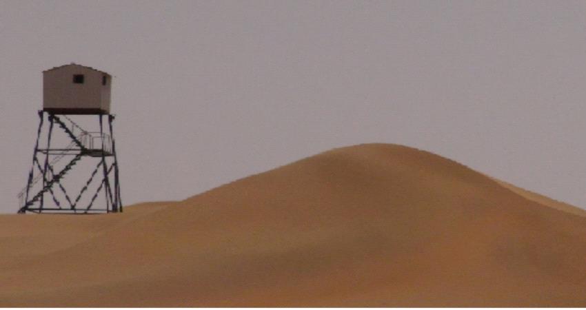 صورة تبين نقاط المراقبة المزودة بأجهزة التصوير والتسجيل عن بعد والمثبتة فوق الكثبان الرملية.
