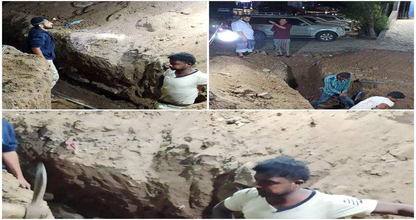 * الصور أثناء تفقد مدير عام كهرباء عدن سالم الوليدي لموقع الكابل المتضرر مساء الجمعة