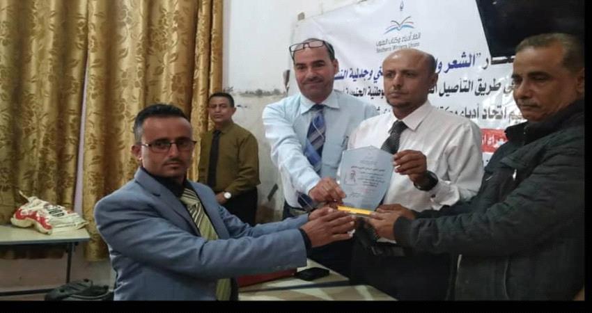 إتحاد ادباء وكتاب الجنوب يمنح الشاعر وليد المزارع درع الاتحاد للعام 2022م