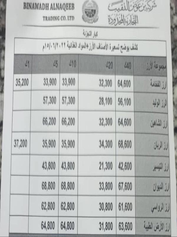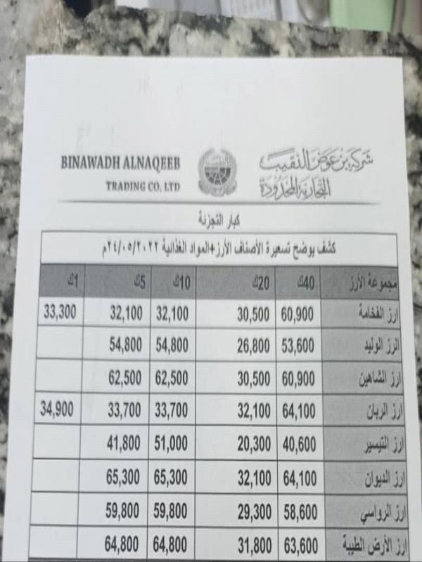 كما رفعت شركة بن عوض النقيب خلال شهرين من ١٦/ابريل حتى ١٥يونيو اسعارالسلع التي توزعها الشركة.