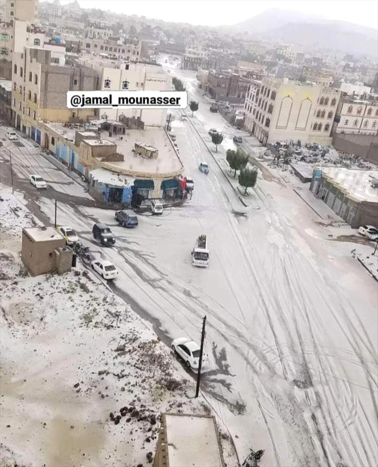 أظهرت صور من محافظة صنعاء اليمنية، تغطية الثلوج لعدد من شوارع صنعاء، عقب أمطار مصحوبة بالثلوج أو ما يعرف محليا بالبرد.