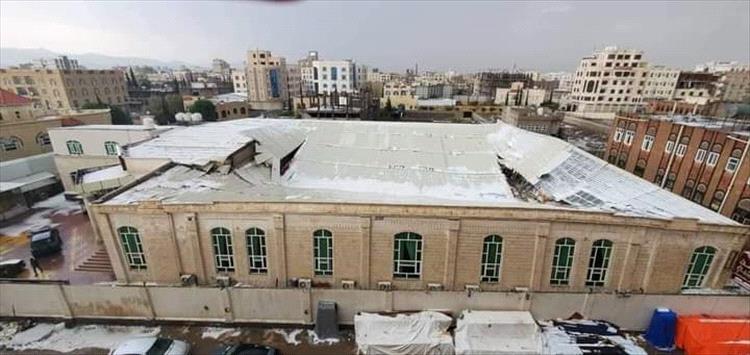 صورة اخرى أظهرت الثلوج تغطي قاعة النخبة، أشهر قاعات الأعراس في صنعاء، التي أنهار جزء كبير من سطحها نتيجة الأمطار والثلوج حسب أفادت محلية