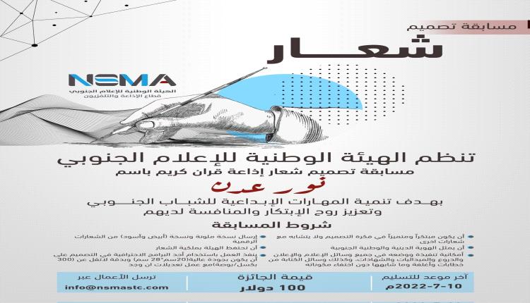 تنظم الهيئة الوطنية للإعلام الجنوبي مسابقة تصميم شعار لإذاعة (نور عدن) للقرآن الكريم.