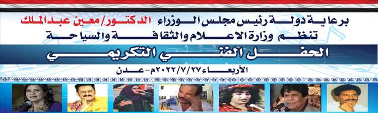 ويأتي الحفل الذي سيقام برعاية رئيس مجلس الوزاء معين عبد الملك ووزير الثقافة والإعلام والسياحة معمر الأرياني تكريما ووفاء لما قدمه عدد الفنانيين خلال مشوارهم الإبداعي والغنائي الطويل في اليمن والمحافل الدولية.
