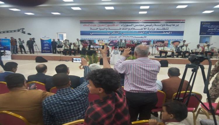 نظمت وزارة الإعلام والثقافة والسياحة حفلا تكريميا لعدد من الفنانين والفنانات الذي شكلوا خلال أكثر من نصف قرن علامة فارقة في سماء الفن الغنائي في الوطن..والذي كان تاثيره واضحا في سماء الأغنية العربية..وهو الامر الذي ابرز دور مدينة عدن الفني الحضاري في المنطقة.