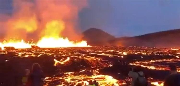 ويظهر في الفيديو بسهولة إمكانية رؤية الحمم البركانية المنصهرة تتدفق من شق بطول مئات الأمتار، على جبل بالقرب من العاصمة ريكيافيك.