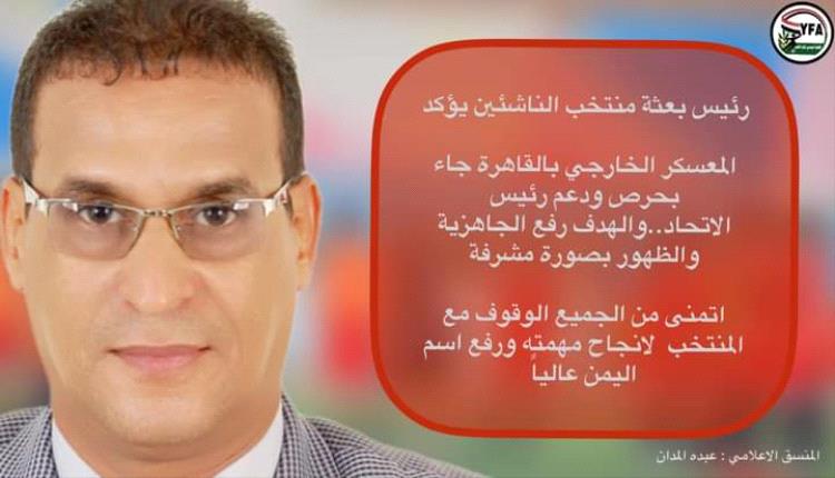وتمنى من الجميع الوقوف مع منتخب الناشئين لانجاح مهمته ورفع اسم اليمن عالياً
