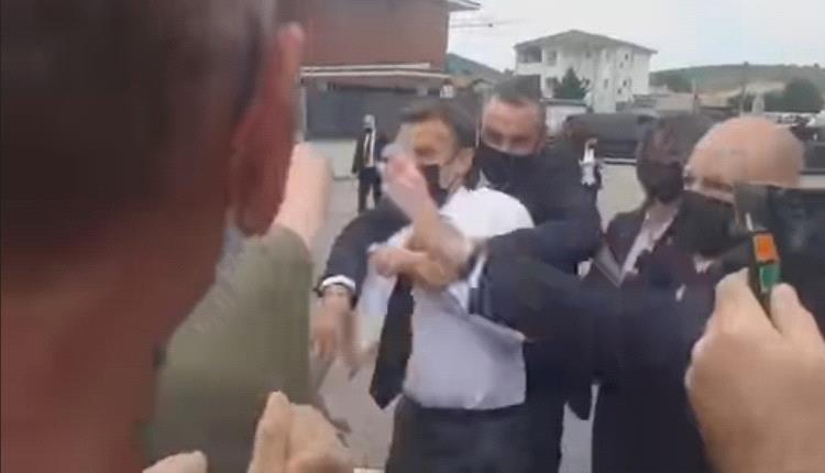 وأظهر التسجيل الرئيس الفرنسي وهو يتجول في أحد الشوارع قبل أن تواجهه امرأة وتقوم بصفعه، ومن ثم أمسك بها مرافقي الرئيس.