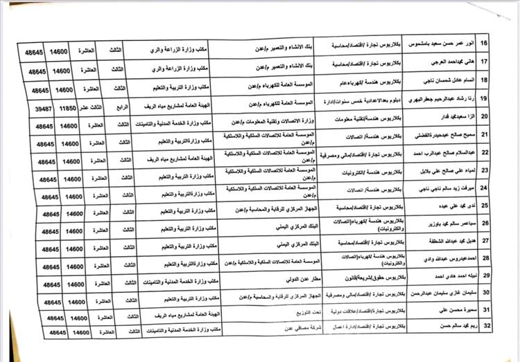 وتنشر عدن تايم أسماء الموظفين كما وردت من الوزارة :