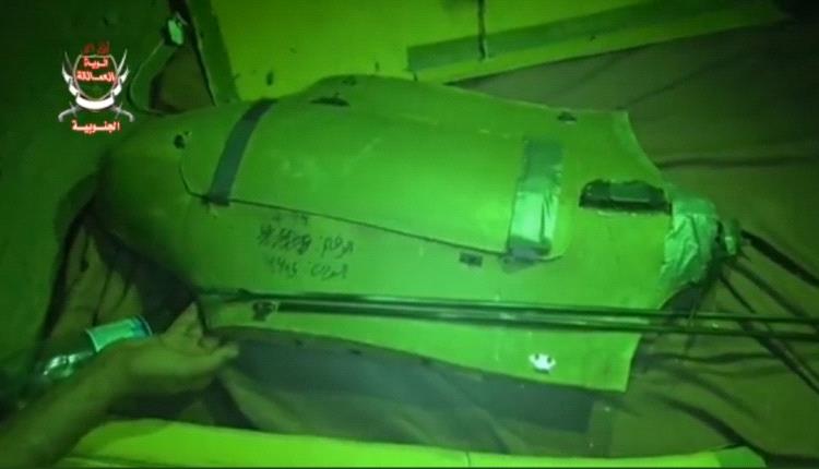 ونشر مدير المركز الاعلامي لألوية العمالقة مقطع فيديو عند سقوطها وفحص أجزاءها.